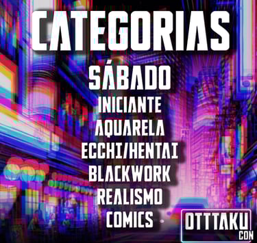 As tatuagens para apresentação deverão ser obrigatoriamente na temática geek e otaku, como animes, hq's, mangás, séries, filmes e games. Os trabalhos deverão ser executados inteiramente no evento, exceto a categoria fechamento.
