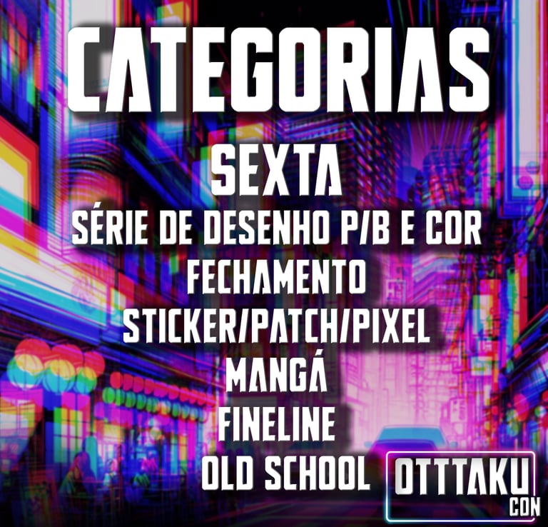 A competição da Otttaku Con terá 18 categorias diferentes divididas nos três dias de evento, sendo: